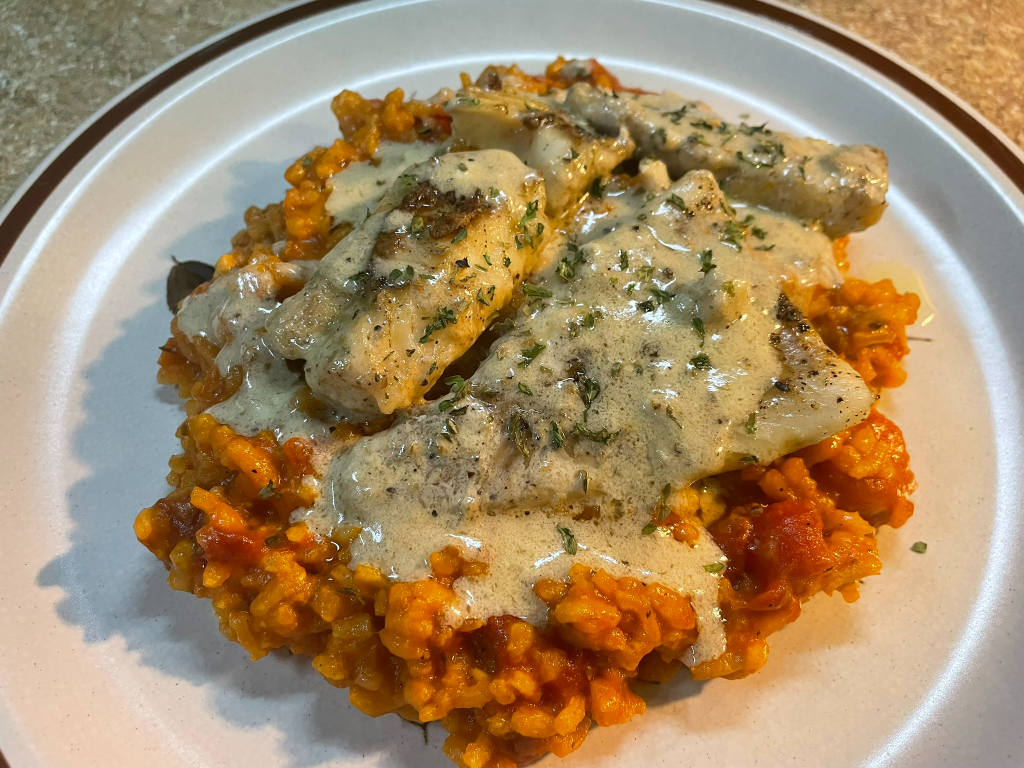 Serve warm over baked, grilled, or pan‑seared fish. Garnish with parsley if desired.